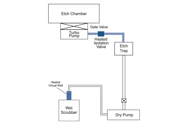 An efficient metal etch Effluent Management Subsystem consists of the Metal Etch Trap, Series 49 heaters, a heated valve, and a Virtual Wall™.
