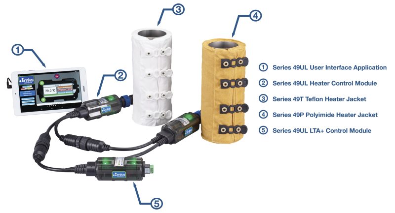 The Series 49UL controller uses custom interconnects that allow the controller to be disconnected from the heater jacket. This feature provides flexibility in system configuration and simplifies maintenance and replacement.