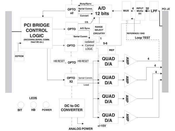 Our 3U analog input/output card is a general-purpose data acquisition control card containing 32 single ended analog inputs and 16 analog outputs. The I/O and power signals are distributed through J2 rear connector. The board form factor, physical dimensions and BUS interface comply with CompactPCI (cPCI) Specification PICMG® 2.0 R2.1.