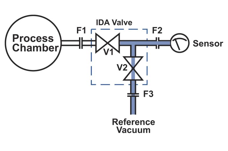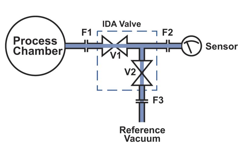 IDA™ In Situ Diagnostic Access Isolation Valves increase the accuracy of, and reduces the time needed for, gauge or capacitance manometer zeroing and calibration during preventative maintenance intervals. They also provide a process chamber access port that enables additional functions, such as system leak checks and diagnostics. Accurate, absolute pressure measurement in-situ with the IDA valve ensures uniformity and repeatability on a system and a system-to-system basis. Process system uptime and productivity are also enhanced, and costs are reduced.