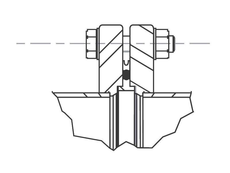 Viton® is recommended where temperatures, chemical resistance or long installed life make it beneficial. Use Buna-N where temperatures are moderate, and installed useful life is consistent with this material. The centering ring is available in stainless steel or aluminum. Use stainless steel where chemical resistance is needed. Flanges and seals are designed to be tightened to metal to metal contact.